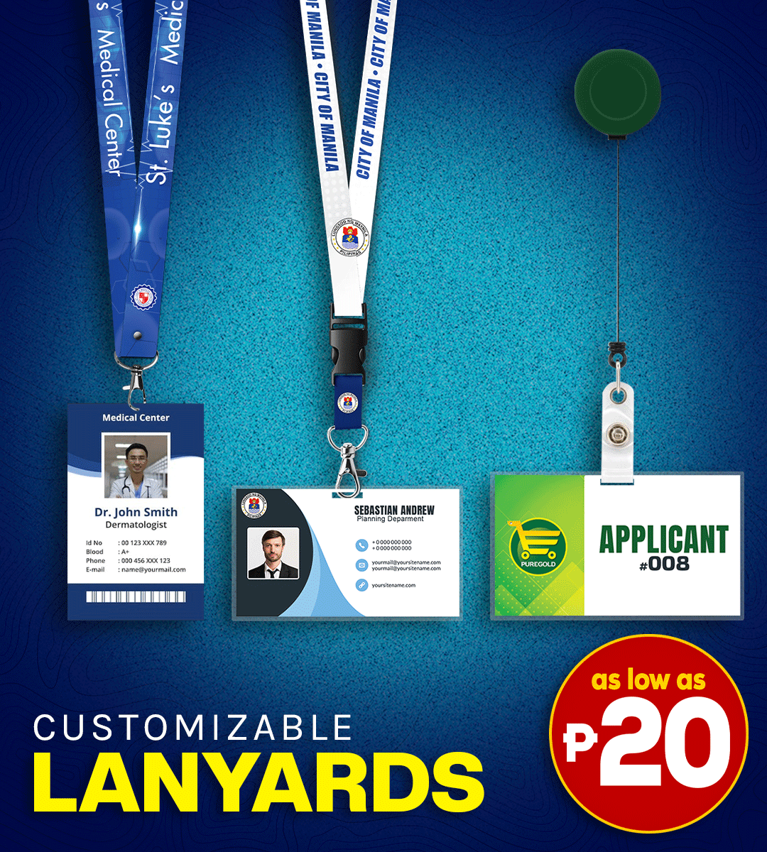 The minimum order quantity varies depending on the product. Typically, the minimum order for custom ID cards is 50, and for lanyards, it is 100. Contact us for specific details.