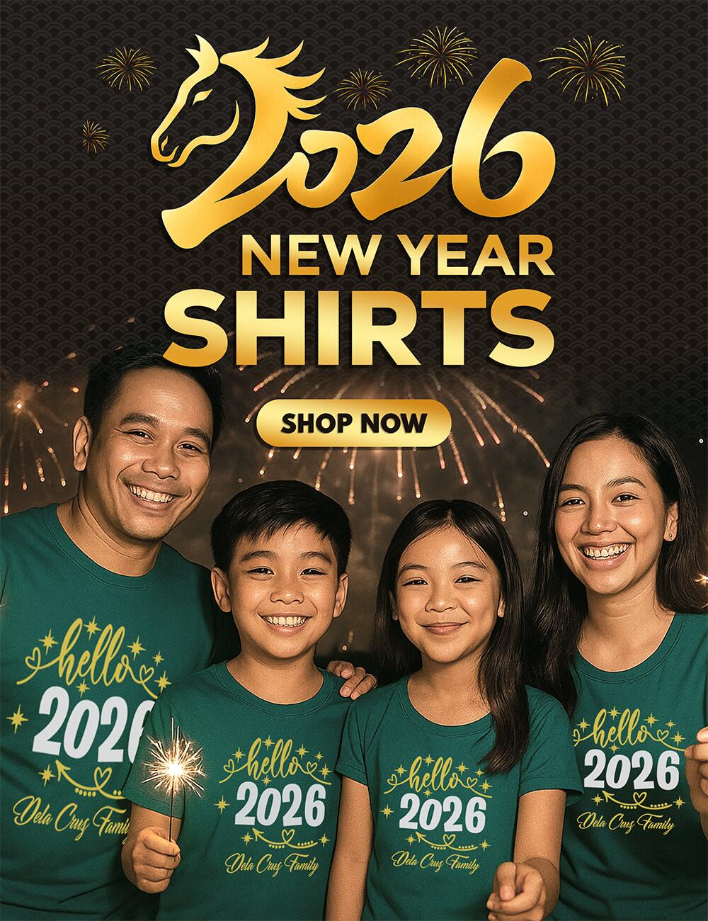 Our New Year shirts come in a full size range from XS to 5XL. We also offer kids’ sizes for family sets.